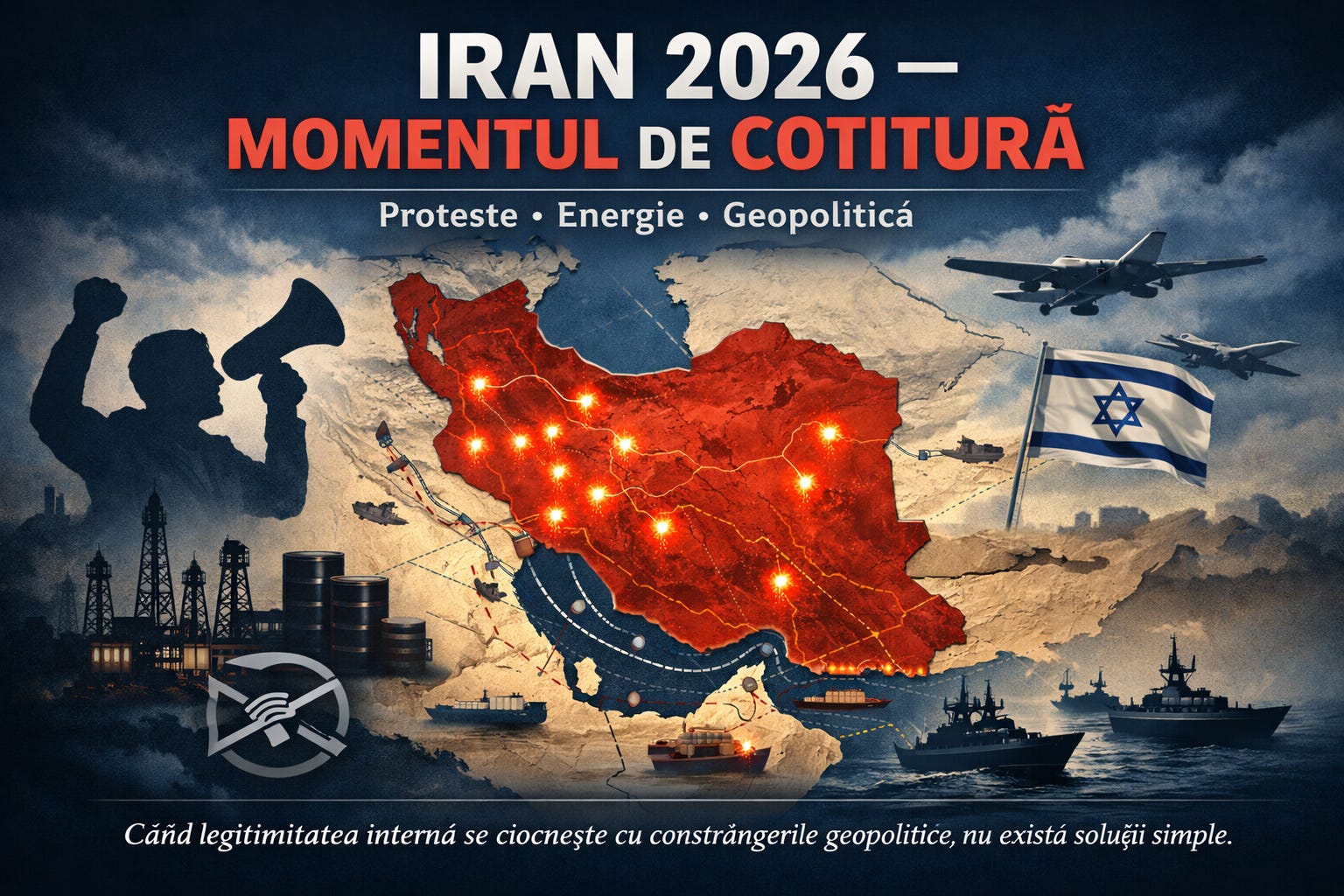 Iranul se află într-un moment structural de tensiune critică, unde legitimitatea internă a regimului ayatollahilor a fost pusă la îndoială de mișcări socio-politice care s-au extins cu mult dincolo de granițele unei crize economice. În ultimele trei săptămâni, proteste de proporții istorice s-au extins din bazarul din Teheran până în toate provinciile țării, acoperind inclusiv regiunile etnic diverse din vest și sud-vest, unde nemulțumirile sociale se suprapun cu ani de marginalizare economică. În paralel, regimul a instituit un blackout aproape total al internetului și comunicațiilor pentru a frâna coordonarea protestelor și a reduce vizibilitatea reală a acestora în lumea exterioară, o măsură care în sine reflectă pierderea controlului asupra informației publice.